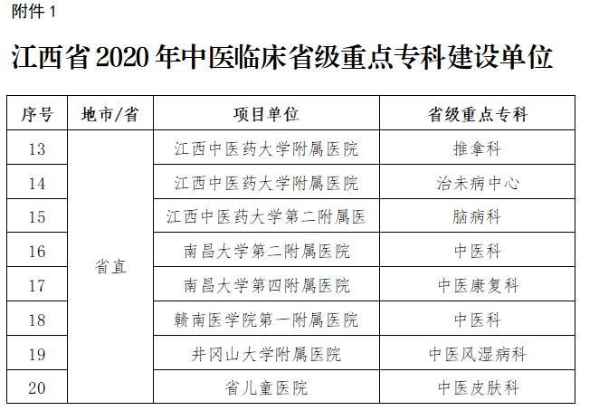 2020年8月省卫健委公布了《江西省2020年中医临床省级重点专科建设单位名单》,经过几年筹备,我科从全省上百个申报项目中脱颖而出荣获省级重点建设学科,这是继我科获全国综合医院中医药工作示范单位后中医学科建设中的又一佳绩,标志着我院中医风湿病研究达到省内一流水平。
