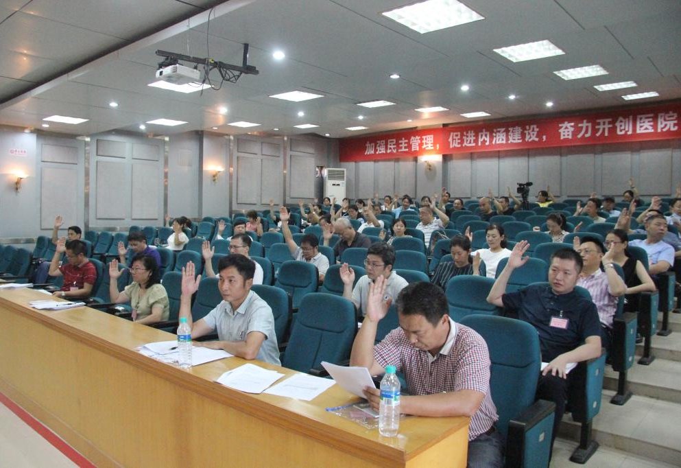 张波指出,此次会议是在高举中国特色社会主义伟大旗帜,深入学习贯彻落实习近平新时代中国特色社会主义思想和党的十九大精神,加快内涵式发展,努力办好人民群众满意的医院的背景下召开的一次重要会议,是我院干部职工政治生活中的一件大事,这说明我们向民主管理、依法办院的目标又迈进了坚实的一步。