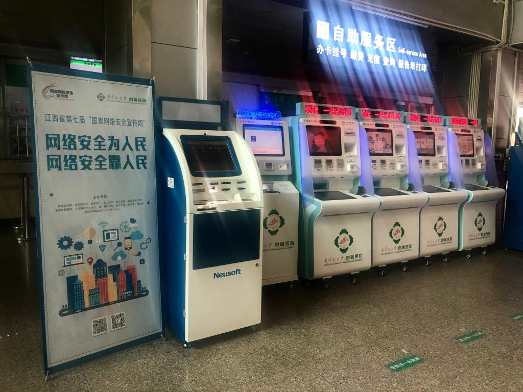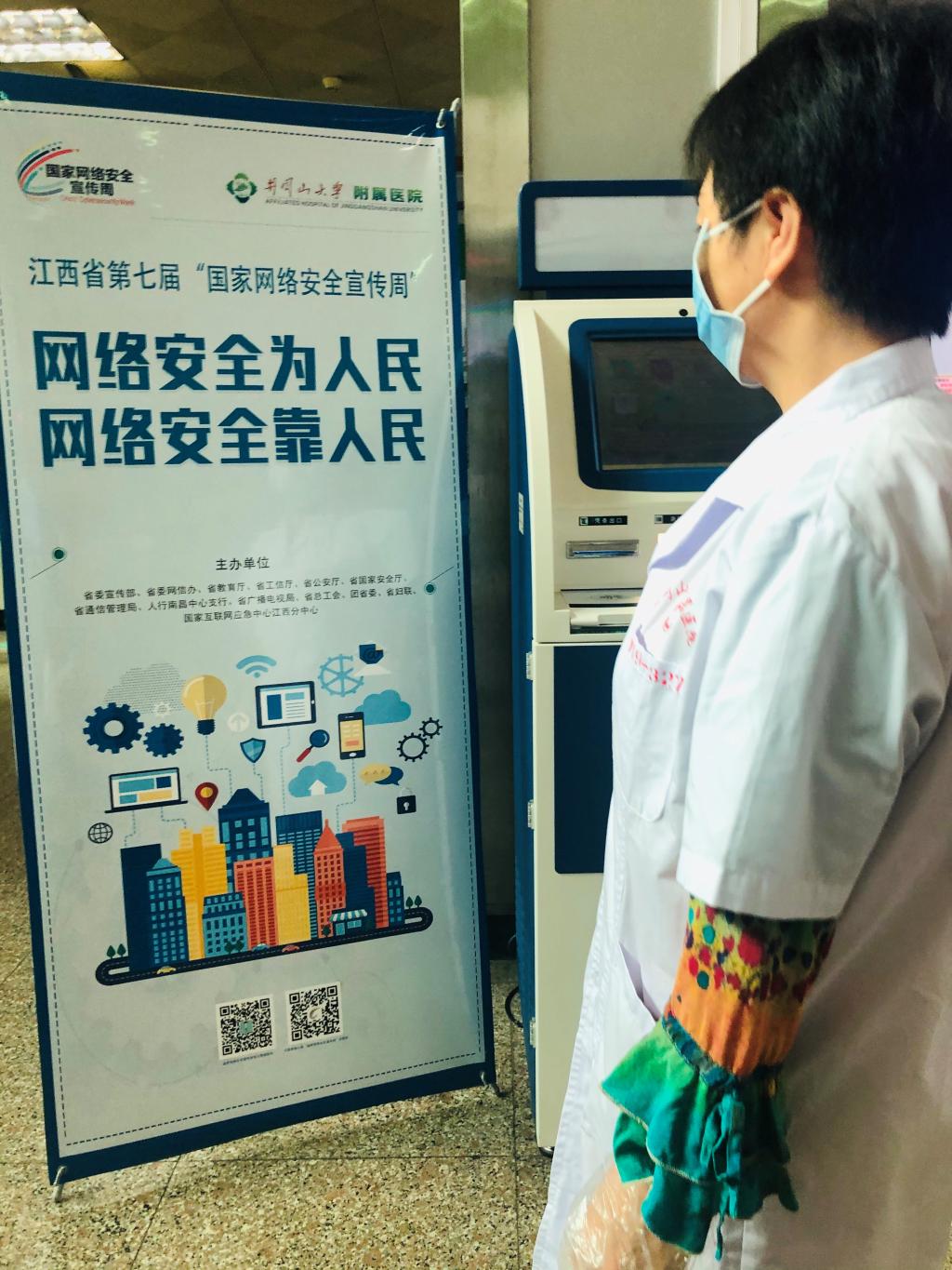 医院在就诊区域摆放了网络安全宣传海报,自助机上循环播放网络安全宣传视频,供广大就诊患者、医务人员观看,帮助患者及医务人员提高网络安全防范意识、预防网络诈骗等。