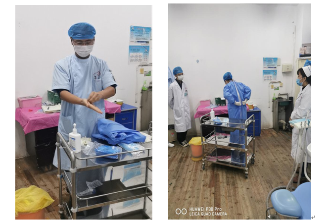 为保障科学、规范、安全、有序地开展备战秋冬季新冠肺炎疫情防控工作。 9月24日下午,口腔科组织科室医务人员开展穿脱隔离衣等防控操作技能培训,以提高医务人员基本防护技能及防护意识。