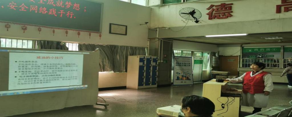 在门诊一楼候诊大厅,营养科主任罗红娥以图文并茂的方式向在场的患者及家属详细讲解了“三减”(减盐、减油、减糖)“三健”(健康口腔、健康体重、健康骨骼)全民健康生活方式。讲座中,发放健康资料80余份。