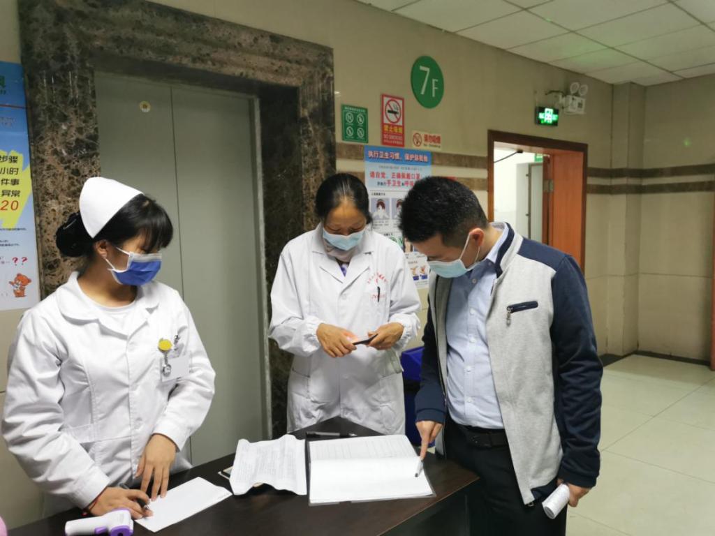 督导检查以听取汇报、查阅资料、实地考察、集中反馈等方式进行。督导组专家听取了副院长伍忠根工作汇报后,分成3组深入预检分诊、发热门诊、临床科室、检验科等部门进行现场督察,详细了解了预检分诊管理、发热门诊设置管理、人员物资储备情况、感染防控和医务人员防护、实验室检查能力、应对预案制定和推演等工作落实情况。