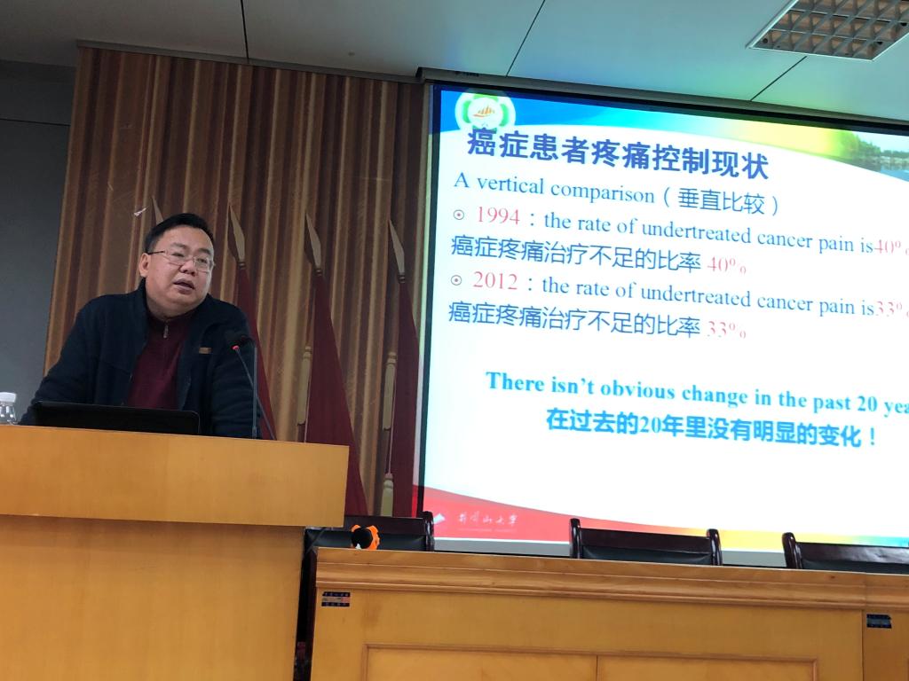 医务科副科长周志军就规范管理麻醉药品,服务癌症疼痛治疗进行讲解。