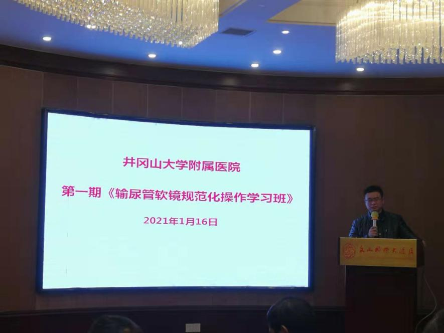 近日,第十三批江西省卫生人才服务团成员、井冈山大学附属医院副院长(挂职)、南昌大学第二附属医院泌尿外科行政副主任刘飞博士带领井冈山大学附属医院泌尿外科团队成功举办井冈山大学附属医院第一期《输尿管软镜规范化操作学习班》。