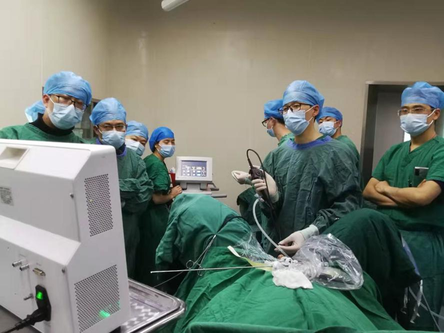 井冈山大学附属医院副院长刘飞博士演示经尿道输尿管软镜肾结石钬激光碎石术