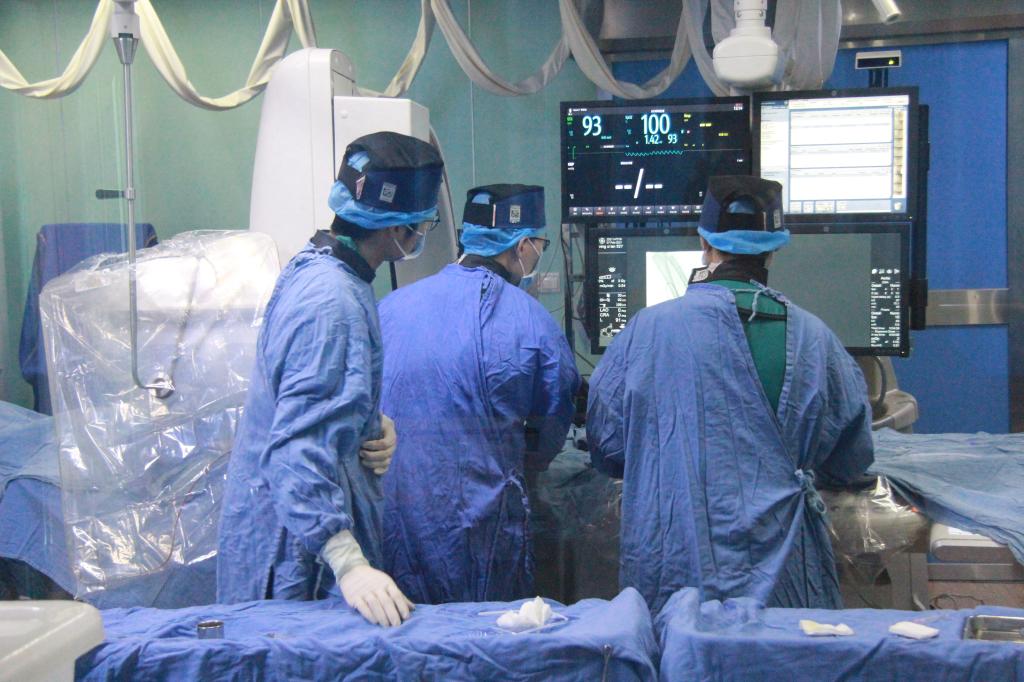 2月7日中午时分,记者来到介入室,见到了刚吃完午饭正在为手术做准备的心胸血管外科的黄玲,尽管有些疲惫,但这是他今天必须要完成的第四台手术。据了解,他带领心胸血管外科介入团队成员曾兰辉、刘冬冬、肖本山、侯佩、顾俊菁从凌晨1点就开始手术了,到晚上18点记者联系黄玲,当天他们团队已经完成了6台急诊介入手术,主要对症治疗的是主动脉夹层、肺栓塞、大咯血及其他出血急症。他们手术特点主要是急症,所以只要有病人出现以上情况需要立即手术的,他们就必须全员到岗,投入手术,对于他们来说,没有所谓的假期,只有病人的需求,病人需要你,你就必须第一时间到岗。2008年12月医院组建了心胸血管外科介入团队,2019年全年完成急诊介入手术700余台,2020年全年完成1000余台,2020年春节期间完成急诊介入手术20余台,今年预计也是这个数字,谈及春节期间仍然要做手术,黄玲没有任何抱怨,只是淡然地表示:“这不是我自己能够决定的,我们的手术都是急发的,所以完全是由病人决定,由不得自己,以病人的需求为第一位。”