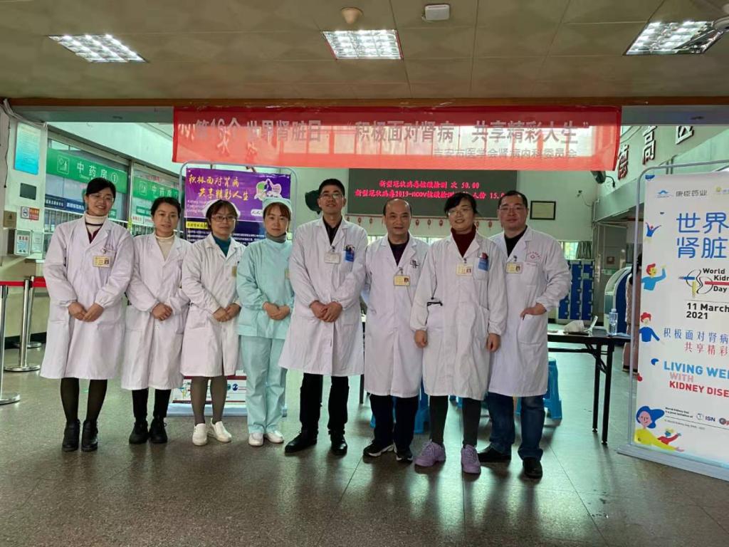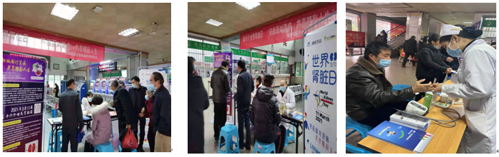 当天上午,在副院长邹亦平的带领下,肾内科医护人员在医院门诊大厅有条不紊的进行了义诊,为肾病患者答疑解惑并进行有关肾病的常识宣教。