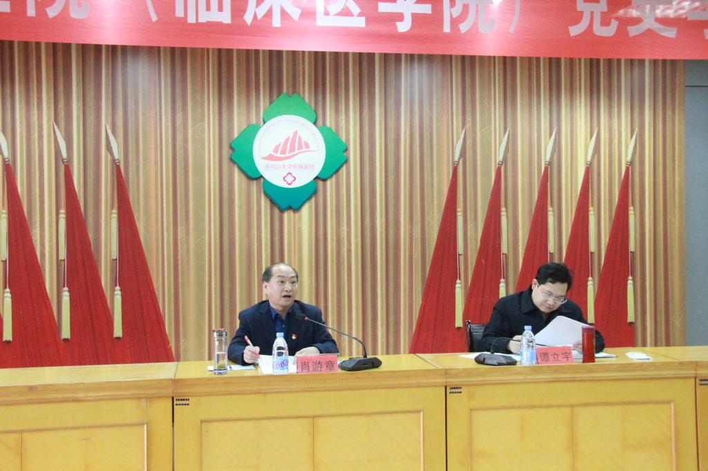 会上,肖游章强调,要提高政治站位,充分认识党史学习教育的重大意义,通过党史学习教育,引导广大党员干部牢记殷殷嘱托、感恩知责奋进,提高自身认识能力、精神境界和干事创业水平,努力将医院打造成“赣中地区区域医疗中心”和把握“当好老百姓家门口的健康守护者”的战略机遇,不折不扣贯彻落实各项决策部署,推动总书记重要指示要求在附属医院落地生根、开花结果。