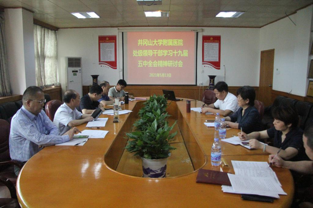 为深入学习贯彻党的十九届五中全会精神,教育引导处级干部把思想和行动统一到全会精神上来,进一步增强“四个意识” 、坚定“四个自信”、做到“两个维护”,不断提高把握新发展阶段、贯彻新发展理念、建设新发展格局的政治能力、战略眼光、专业水平,为加快实施高质量跨越式发展首要战略,奋力谱写医院改革发展新篇章,建设特色鲜明的区域高水平医疗中心打牢思想基础,以优异成绩迎接建党100周年。5月13日上午,我院在临床医学院行政楼三楼会议室举行处级领导干部学习十九届五中全会精神研讨会,院党委书记肖游章主持,院领导班子全体成员参加。