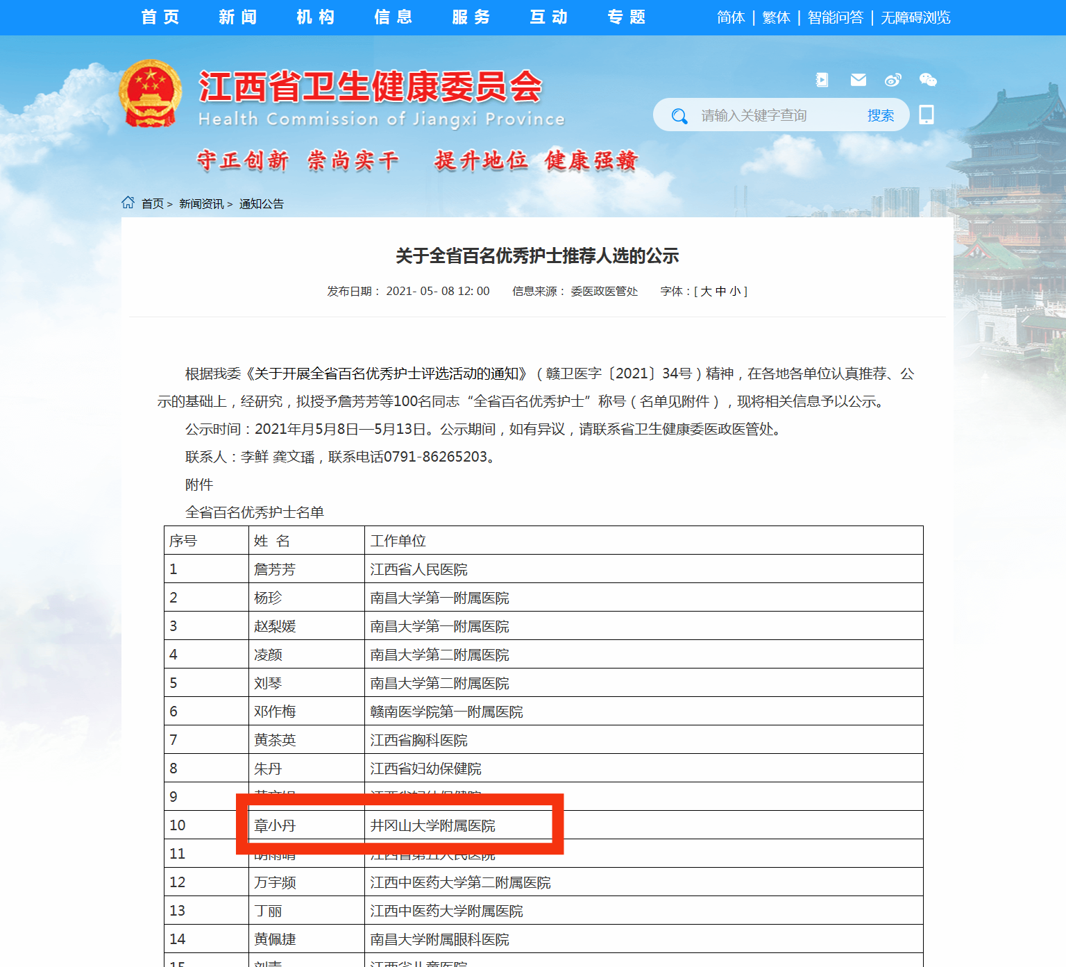 护理部副主任刘昱昕获江西省杰出护理工作者荣誉称号