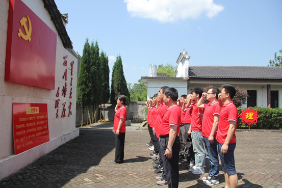 在毛泽东旧居革命教育基地宣誓墙前,王政华带领党员庄严宣誓,重温入党誓词,铮铮誓言,铿锵有力,庄严承诺,掷地有声。
