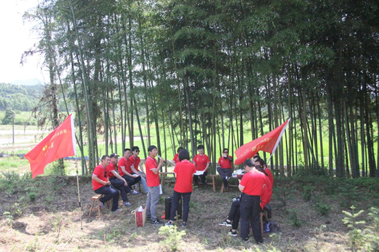 在树林里,机关第一党支部党员干部们搬着板凳,围坐一圈,以党小组为单位进行唱红歌比赛,各党小组以独唱、对唱、合唱等不同形式将红歌比赛推向高潮。《没有共产党就没有新中国》《保卫黄河》《十送红军》等熟悉优美的旋律在田间响起,大家用最嘹亮的歌声、最真挚的情感重温红色经典、唱响革命旋律、礼赞共产党、致敬新时代,燃起昂扬激情。
