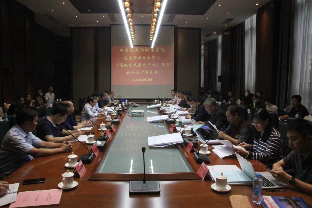5月18日下午,我院急危重症救治中心项目初步设计审查会议在吉安宾馆举行,省发改委投资处处长周勇一行三人、省卫健委规划发展与信息化处处长丁小俊、井冈山大学副校长黄俭根、市发改委投资科科长颜小勇、江西省建筑设计研究总院专家胡伟民等省专家7人、院党委书记肖游章、院长谭立宇等我院13人、设计单位(浙江省现代建筑设计研究院有限公司)7人参加。