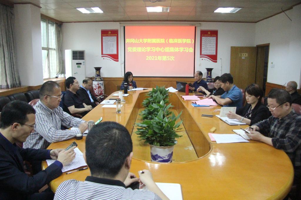 5月20日下午,我院党委理论学习中心组在临床医学院行政楼三楼会议室举行集体学习会,学习新修订的《中国共产党统一战线工作条例》,学习党的十九届五中全会精神,重点学习了中华人民共和国国民经济和社会发展第十四个五年规划和二〇三五年远景目标纲要,以及江西省“十四五”规划和二〇三五年远景目标纲要。党委书记肖游章主持并讲话,院领导及院党委理论学习中心组其他成员参加,副院长伍忠根、外科第二党支部书记黄玲、内科第三党支部书记曾俊权作了重点发言。