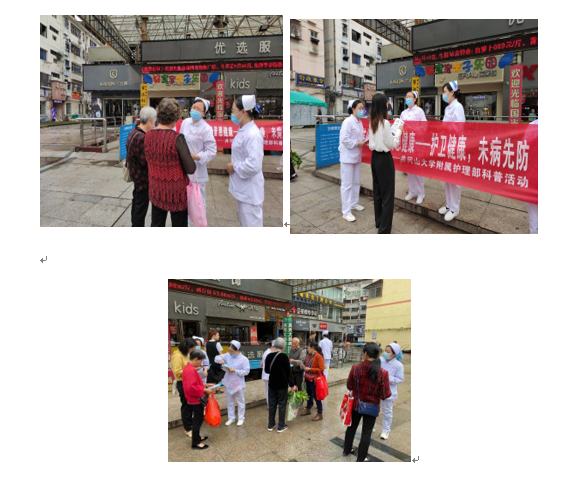 为了做好“外防输入、内防反弹”工作,结合目前国内疫情形势,护理部于5月20日在文山步行街开展了以“科技促民生 科普惠健康——护卫健康 未病先防”为主题的新冠肺炎防控科普活动。让健康意识、新冠肺炎防控措施深入人心。