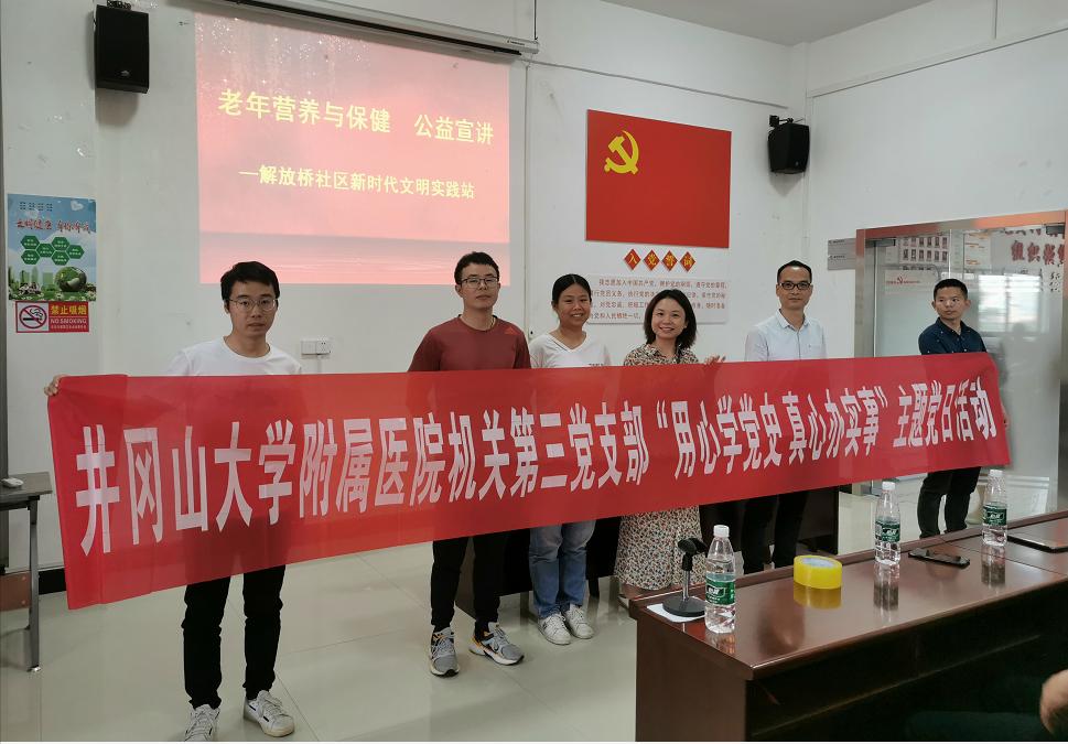 6月4日,为贯彻落实井冈山大学党委《关于在全校开展党史学习教育的实施方案》和省教育厅《关于切实解决老年人运用智能技术困难的实施方案》通知的要求,为扎实开展好“我为群众办实事”实践活动,机关第三党支部、吉安电大党支部、吉安市社区教育指导中心按照医院、学校和市教体局的安排部署,共同前往解放桥社区,组织开展“用心学党史 真心办实事”为主题的党日活动。