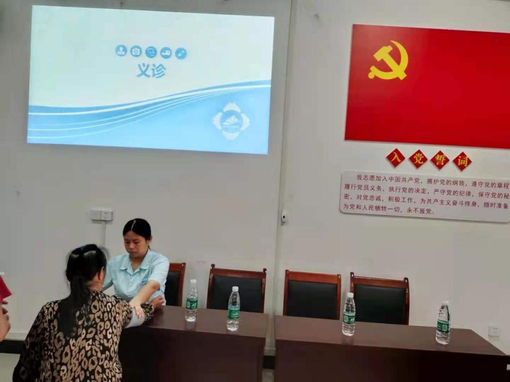 其后,机关第三党支部党员张婧,还为社区老人提供义诊咨询和血压检测。