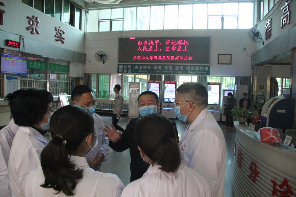 为支援上海疫情防治,根据国务院新冠肺炎疫情防控联防联控机制统一部署和江西省疫情防控指挥部紧急调派,2022年4月3日下午,井冈山大学附属医院援沪医疗队正式出征。14时,在医院门诊一楼大厅举行了简短的出征仪式,院党委书记肖游章、院长谭立宇及其他院领导参加。