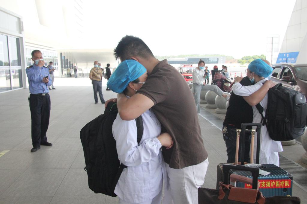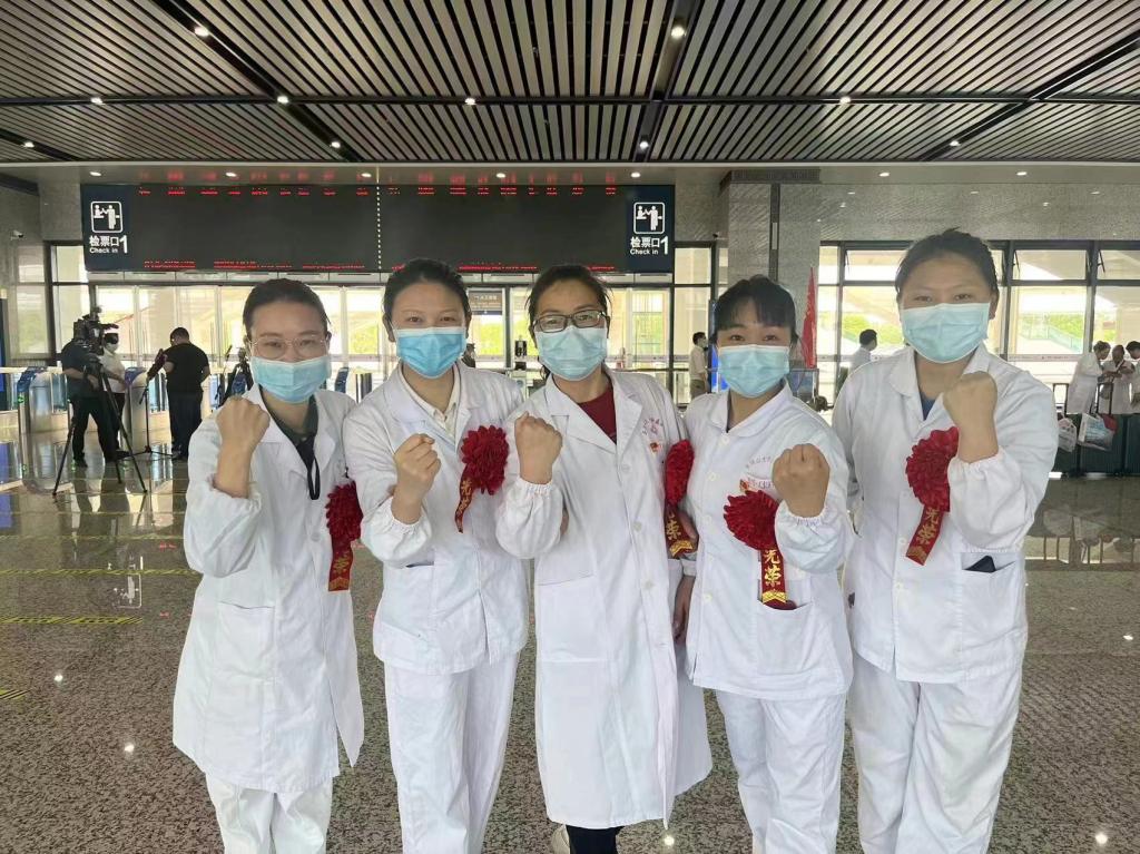仪式结束后,院领导、相关科室人员、家属将医疗队送到了吉安西站,和她们道别,希望她们早日凯旋。她们也纷纷表示:自己会扛起身上的职责和使命,和全国各地的医务人员,共同抗击上海疫情,同时也会做好自身的防护,望领导和家人不要担心。