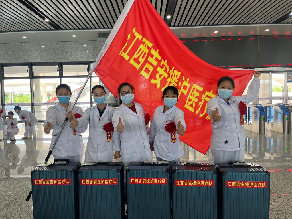 据悉,她们将和吉安地区其他医疗机构的医务人员,共169人乘坐专列前往上海抗疫,希望她们早日平安归来。(文/图 黄军伟 审核 彭晓露)
