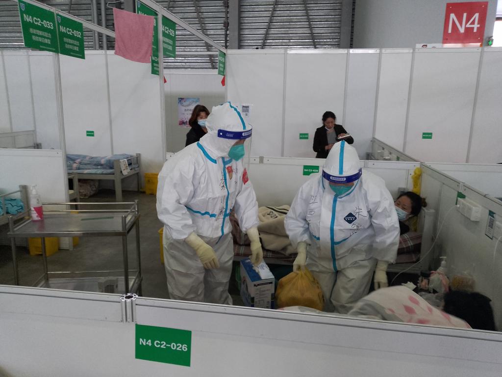 肖晓春知晓所有情况后,安排人员合理排班。每班12名护士,分管700多个病人,因为舱内空间大、人多,管理越有序,工作才能有条不紊。我们分成了两大组,一组分管320个床位,二组分管460个床位,再由责任组长分配到每一位组员,包干制分管病人。