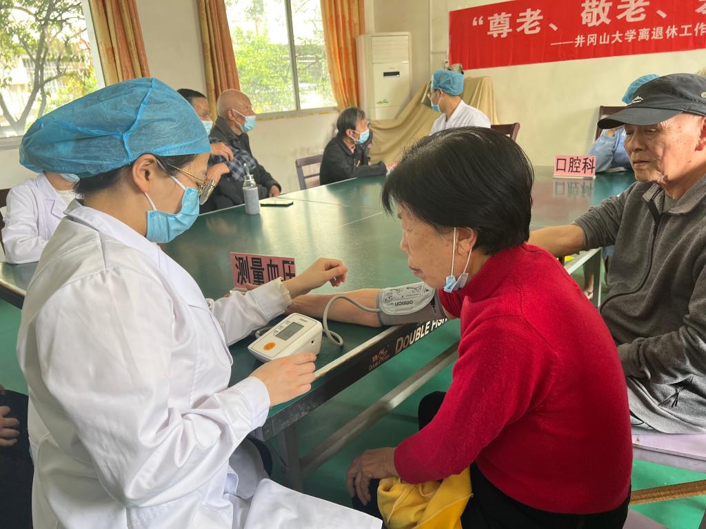 为进一步推动党史学习教育走深走实,扎实开展“我为群众办实事”实践活动,同时也是为了提高离退休职工健康意识、做好健康管理,4月21日,井冈山大学离退休工作处联合井冈山大学附属医院机关第三党支部、五官党支部开展主题为“尊老、敬老、爱老”的大型义诊活动,用实际行动为离退休职工送关爱、送健康。