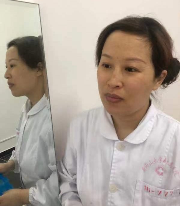 印象最深刻的是3月25日第五轮全员核酸采样时,雷雨天气,温度又低,虽然之前请教过康云如何能让面屏不起雾,她告诉我在面屏上喷一层薄薄的酒精就可以了。尽管我们提前采取了措施,但当天气温低又湿度高,实际采样不一会儿,每个人的面屏上全是雾,雾又凝集成小水珠,严重干扰了我们的视线,看不清楚采样位置,如何能保障标本的准确性呢?我不断的找角度,希望从面屏的某一个没有起雾的角度能看清楚采样位置,此时防护口罩又勒得生疼,我的内心是沮丧的,心理起伏也很大,自己不断的在做心理调适:不要焦虑,保持冷静,你是一个有着十多年护理经验的护士了,还是一名队长、一名组长,要想办法解决问题。我请志愿者帮我在面屏里外再次喷洒酒精试一试,面屏温度下降,视线有了短暂的清晰,赶紧把经验传授给组员,然后抓紧时间采样。就这样反复操作,长长的学生队伍终于快看到头了。此时,雨停了,在进行手消的空隙,我活动了一下脖子并抬头瞅了瞅,太阳从乌云密布的天空漏下一丝一丝的金光。真好!“阳光总在风雨后”,面屏能看清楚了,我又有了战胜疫情的信心,内心的雾霾也被阳光驱散了!