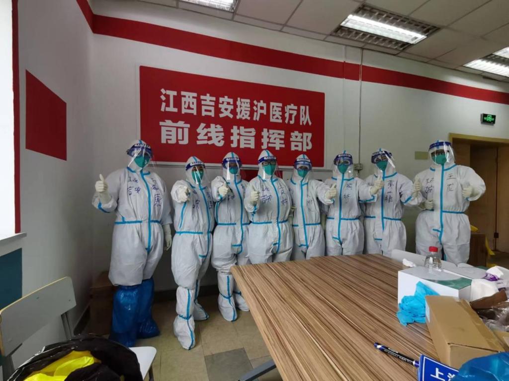 自4月12日踏上开往上海的专列以来,我已经在这座距离家乡八百公里的国际化大都市支援抗疫工作半月有余。时间过的很快,和家人、同事告别的场景仿佛还历历在目,初来上海时的心情也依旧清晰深刻,激动和迷茫杂糅一团,激动的是身为一名医务工作者能有幸参与到此次的抗疫,迷茫则是对前方疫情情况的未知。我们井冈山大学附属医院同行的有王风婷队长(副主任医师)、刘瑾(主管护师)、郭美莲(主管护师)、李佳(主管护师),大家都有着15年以上临床工作经验。在从吉安往上海的路途中,我们也一直相互鼓劲、加油,做好了相互照应,并竭尽全力支持抗疫工作的准备与决心。