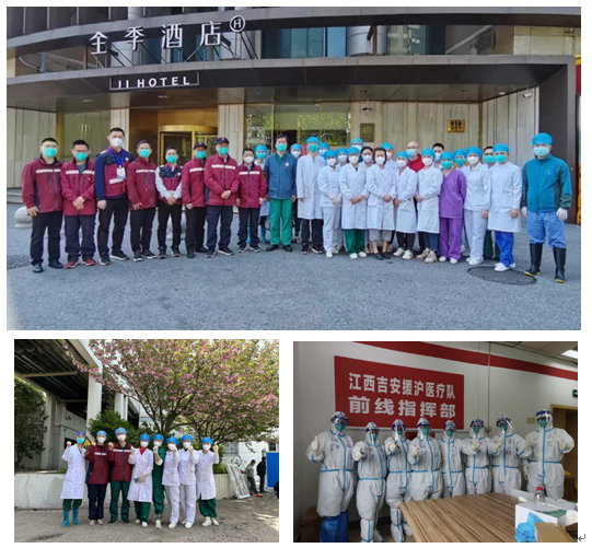 井冈山大学及井冈山大学附属医院是我们的坚强后盾,领导及全体同事和我们的心融在一起,我们一定牢记领导叮嘱,加强个人防护,努力工作,发扬井冈山精神,圆满完成任务。(周秋根)