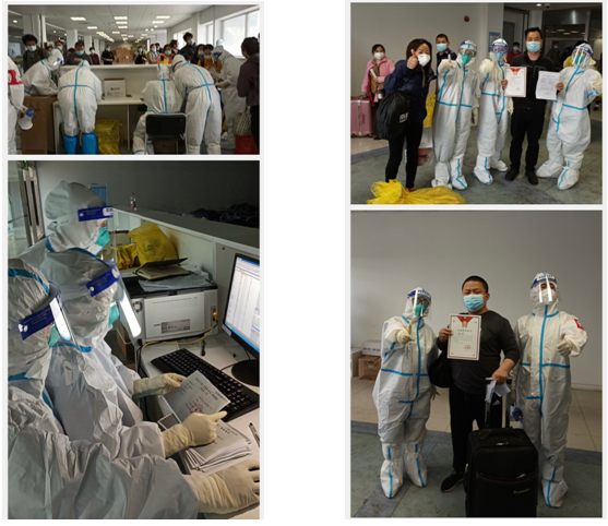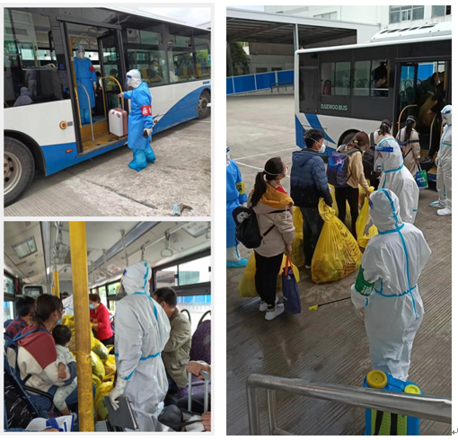 没过多久,负责接送出舱人员的大巴车来了,组长迅速将全组人员分成了三个小分队,一个小分队负责核实出舱人员信息,并收回解离证明书下联;另一小分队组织出舱人员有序的坐上了大巴车,清点人数后详细的讲解了居家隔离和生活中自我防护的要点;还有小分队则负责出舱病人的物品和环境消杀工作。工作井然有序的进行着,不到一个小时解离病人200余人。