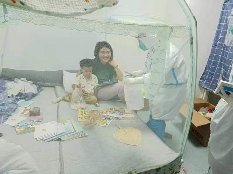 在抗疫一线,每天都会发生各种小插曲。我负责的区域有一位74岁的老奶奶,每隔一两个小时就来询问何时能出院。我每次都耐心地向她解释出舱政策,但是总觉得她心里还有其他事。我抽出休息时间来到她的床边打算给她做一个简单的心理辅导,通过交流,了解到奶奶是因为看到和她同时进舱的人都已经出院了,而且儿子本来也可以出院了,但是为了陪她还在舱内,且这两天没有给她采集核酸。“奶奶,您的核酸问题我已经和指挥部反映了,您也不要着急。”我耐心地给奶奶解释。奶奶得到我的安慰后,心情也好多了。接下来的几天,我都会抽空去陪奶奶聊天,总是能看到她脸上的笑容。两天后,奶奶接到出院通知,我特意去和她做了告别,并叮嘱她后续的防护注意事项。