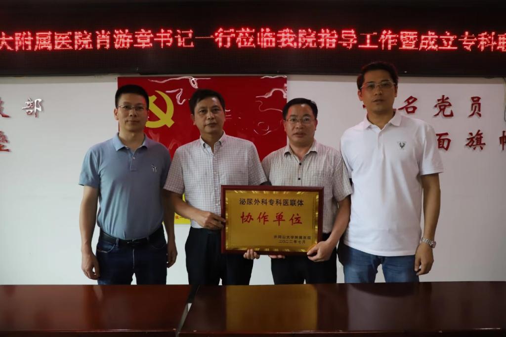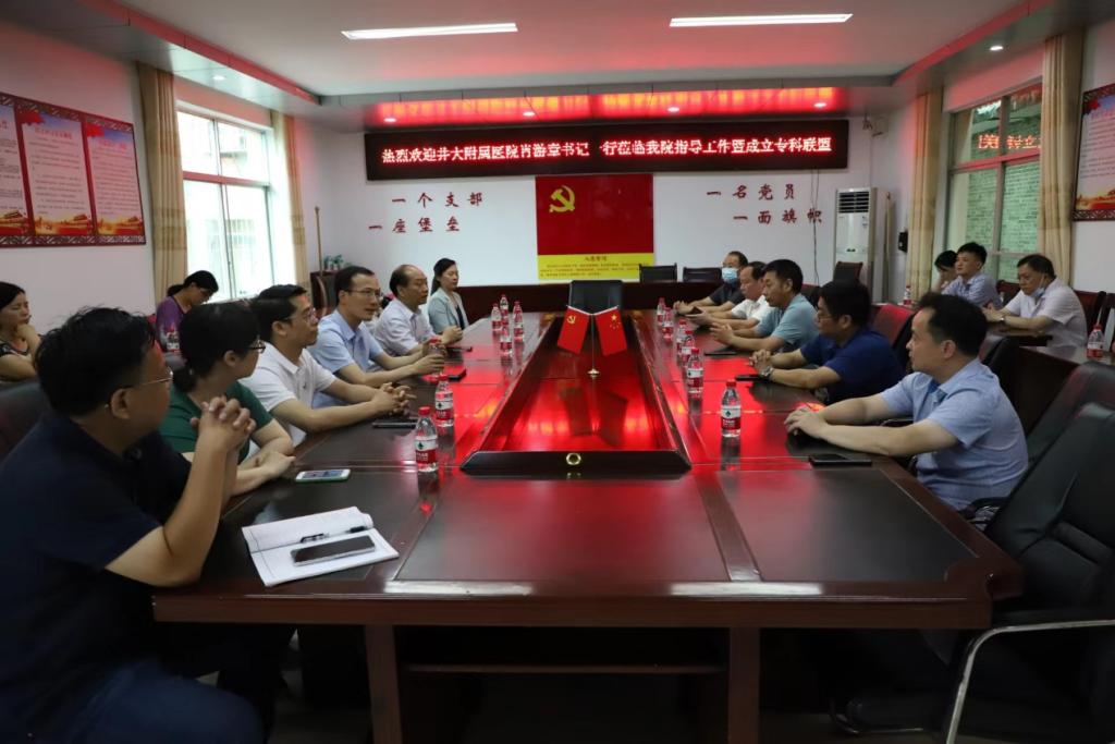 激情七月,生机盎然。7月4日,井冈山大学附属医院与永丰县人民医院专科联盟合作交流会在永丰县人民医院召开。两院齐聚一堂,旨在相互交流,共同探讨加快协同发展、分工合作、质量趋同、双方共赢。共同见证了两院泌尿专业和口腔专业两个联盟的成立。井冈山大学附属医院党委书记肖游章,副院长黄玲及相关科室主任,永丰县人民医院领导班子参加交流会。