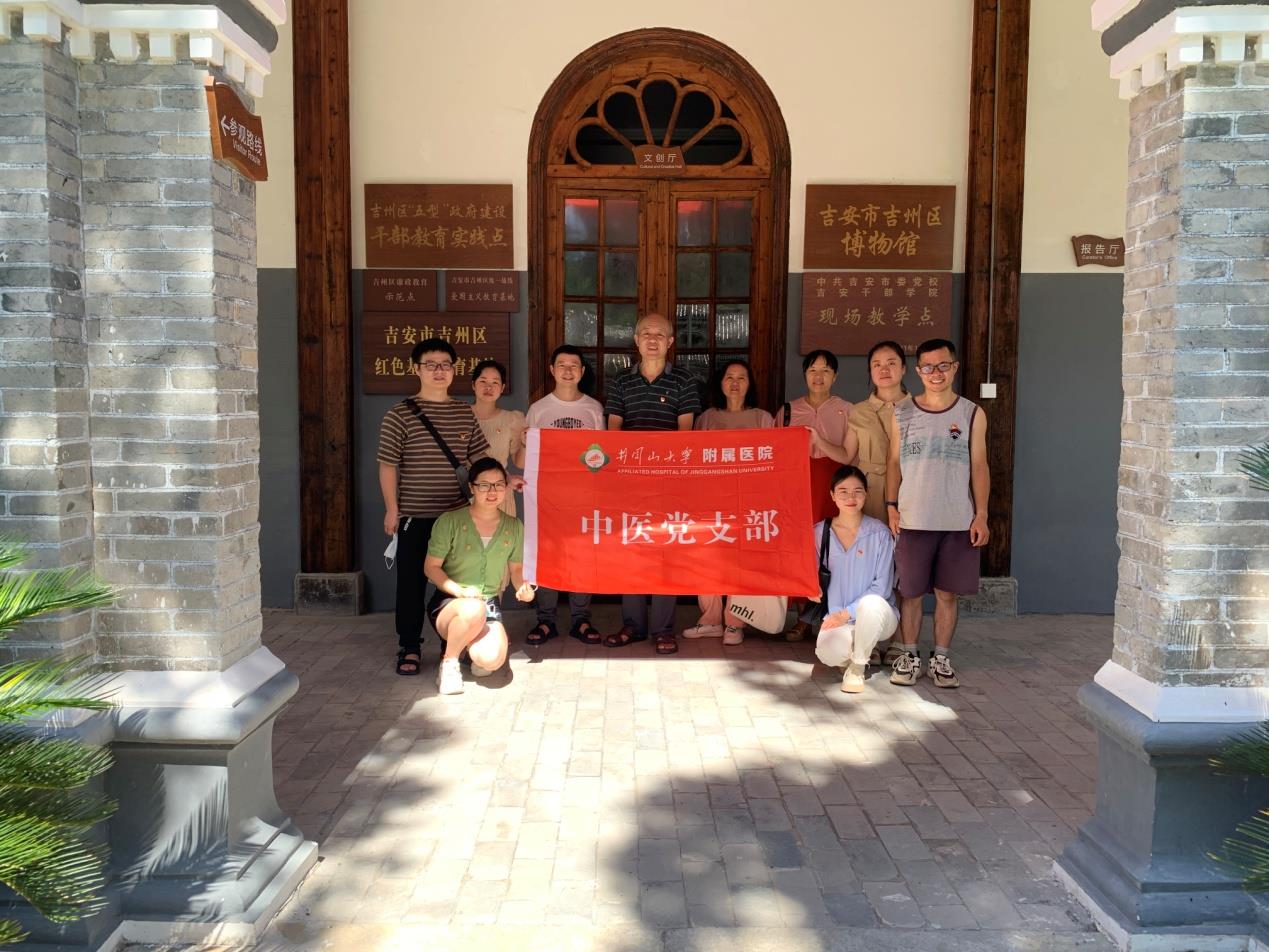 8月21日上午,冒着炎炎烈日,中医党支部走进中国共产党早期吉安革命活动旧址,来到“九打吉安红四军指挥旧址”参观学习,追寻红色起点,传承红色血脉,接受革命思想洗礼。在九打吉安历史陈列馆,党员们仔细学习馆内陈列展板、观看九打吉安影像记录、听电子VR讲解,深入地了解那段艰难卓绝的革命斗争历史,重温了在九打吉安革命战斗过程中数十万工农红军战士前赴后继、可歌可泣的革命先辈的英勇事迹。支部书记王培德说:“我们要传承红色基因,坚持以政治建设为统领,深学笃行习近平新时代中国特色社会主义思想,持续巩固深化全面从严治党成果,坚决捍卫‘两个确立’,坚定做到‘两个维护’,不断提升‘政治三力’。大力弘扬伟大建党精神和井冈山精神,赓续红色血脉,我们要常态化开展廉政教育,使‘讲忠诚、勇担当、善落实、争一流、重廉洁’成为我们党员干部的必备政治担当,为今后更好更优质的医疗服务提供坚强的理想信念基础。”(文/图 陈菊花 胡亮 审核 王培德 黄军伟 彭晓露)