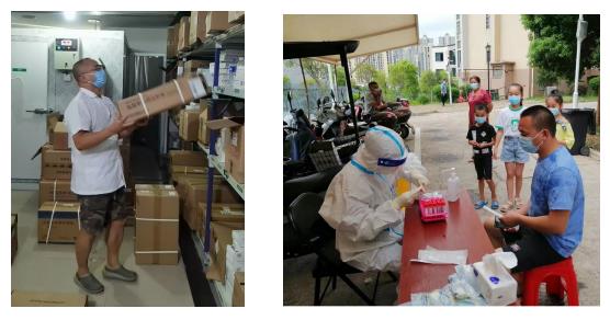 药剂科针对疫情防控形势,立即召开科务会布置任务,进行防疫药品的采购和储备,全力保证药品供应,做好科室的日常消杀和个人防护,积极报名加入疫情防控志愿者队伍。面对因疫情管控,科里多名同事无法来上班,科内缺员严重的情况,科里的党员也纷纷表示,“我是党员,我顶上”,首先安排排班,科里成立了党员应急后备队,全力保证科室正常运转。科里王珺因为住在封控区,无法来上班,党员王玮玮同志主动要求来接替上班;党员曾金娣同志,克服爱人在单位抗疫无法回家,家中两个孩子上网课的困难,每天坚守岗位,积极申请报名加入医院志愿者;由于疫情影响,药品物流异常困难,党员张媛同志,和药库的彭靖同志一起加班加点,多方联系,全力保证医院的药品供应和抗疫药品储备。9月6日,科室党员胡立业、刘国华、杨苏芳、曾金娣、王玮玮纷纷响应医院征召,连夜打包,告别家人,离开家门,入住医院安排的临时住所,准备随时战“疫”。