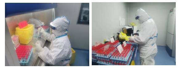 检验科面对陡然增多的核酸检验工作量,科室负责人戴泓厚主动请战,放弃休息,扎根在医院,夜以继日投入到这场艰巨的战斗之中,每天对PCR核酸实验室情况进行摸牌,了解情况,安排人员,为科室的检测人员提供最可靠的后勤保障,全体人员加班加点,并肩作战。检验科充分发挥党员先锋模范作用,克服超负荷工作的困难,一丝不苟地完成每天繁重的核酸检测任务。在第一次全员核酸检测的第一个夜晚,面对一箱箱源源不断送来的核酸标本,看不到尽头时。检验科紧急加派人手,成立以党员戴恩龙同志、预备党员万风龙同志为骨干的核酸检测应急小组,反复核对,仔细查验,确保每一份标本报告都能准确、及时、有效的发出。