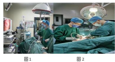 疫情期间仍有急诊病人住院,入院前对病人及家属查健康码、连续三天核酸、行程等,在保证防护安全的前提下安排入普外科病房,如果病人无核酸结果则先入住住院部二楼过度病房待核酸结果出来并且阴性再转入普外科病房,短时间完善检查安排急诊手术(图1腹腔镜阑尾切除术、图2开腹探查手术)。疫情期间全院其他科室需要会诊,值班医生按院内会诊要求按时院内会诊(图3造瘘管导致腹水外渗患者,贴上造瘘袋为患者省去每天换4-5次药的麻烦)。