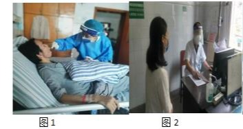 普外科科室日常工作由张旭华主任亲自安排,每天早上7时50分左右医务人员先进行核酸采样,医务人员核酸采样在换药室进行,换药室窗户打开,空气对流好,大家有序排队,间隔1米以上,医务人员核酸采样完成后由护士长刘海花给住院病人核酸采样(图1病员核酸采样)。病人家属核酸采样由自助机开单院内核酸采样点采样,老年陪护家属由护士协助完成核酸采样。核酸采样完成后门诊医生按时门诊(图2乳腺结节患者疫情期间就诊普外科门诊),因为门诊病人来自社区,做好医生的自我防护非常重要,第一步就是查健康码、连续三天核酸结果、行程码等。病房医生查房、开医嘱、换药,一些日常工作,包括出院病历回收仍旧按照3天归档时间上交病历。病房环境卫生尤其不能忽视,所以科室每天安排医务人员进行全楼层无死角的消杀工作,以保证工作生活的环境安全卫生,这是我们静态管理下工作生活赖以生存的基础。
