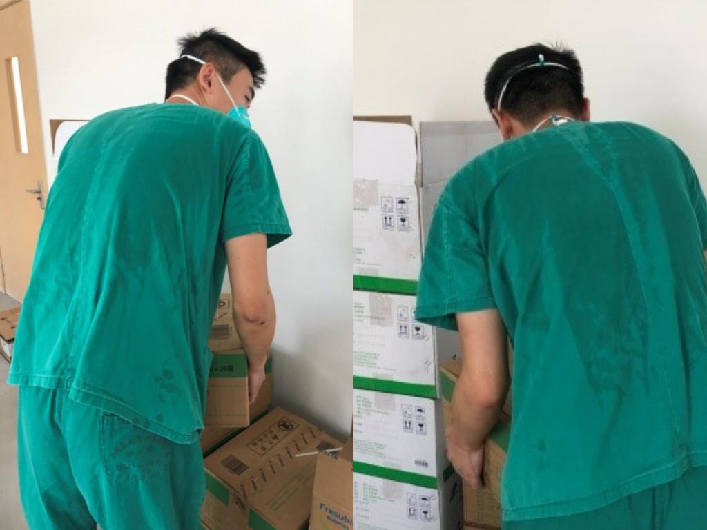 药库的彭靖药师,连夜打包个人物品住进医院,他身兼数职,一人完成药品采购、出库、入库、运输药品工作,确保临床一线治疗用药需求,全力做好疫情防控人员的后方支持工作。