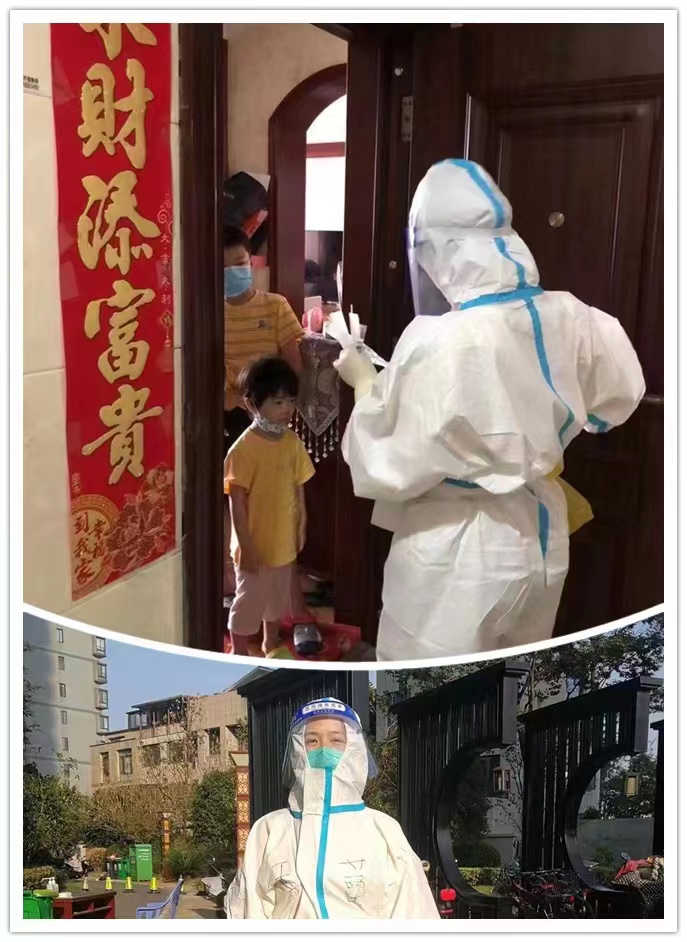 超声科医生王蕾,同时也是井大附院门诊第二党支部的一名入党积极分子,在9月7日至10日小区管控期间,积极响应社区临时党支部号召,加入到居住地北门社区环湖湾小区的志愿者队伍中,多次参加居家隔离住户的上门核酸采样工作;施行足不出户防疫政策后,主动上门为需要注射服务的住户提供帮助;小区有患儿发烧,及时出诊;宣传防疫政策等工作。
