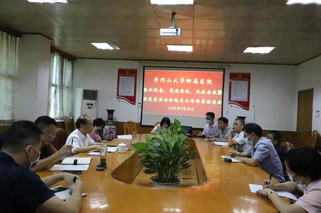9月30日,医院召开意识形态、党建思政、民族宗教暨国庆前后安全稳定工作部署推进会,院党委书记肖游章出席并讲话,院党委班子成员、各党支部书记、有关科室负责同志以线上、线下形式参加会议。