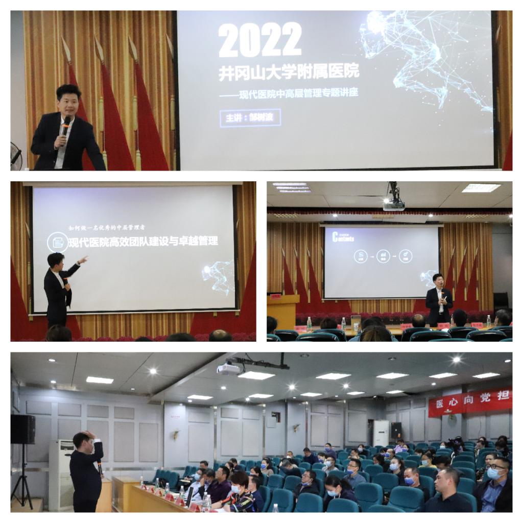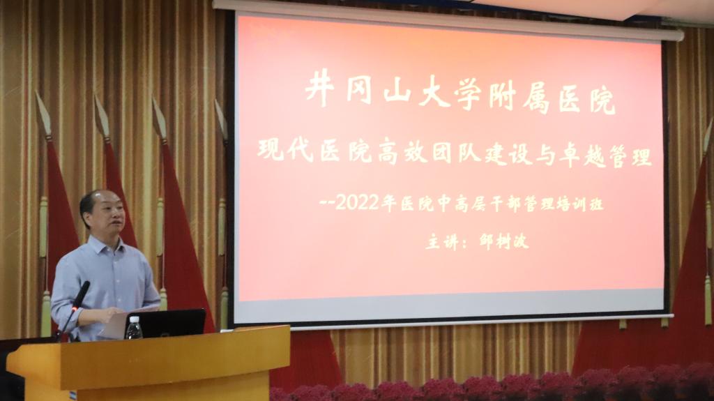 10月14日,我院举办2022年医院中高层干部管理培训班,特邀国内著名的医院管理执行文化导师邹树波老师前来授课,院党委书记肖游章主持开班仪式并作动员讲话,其他院领导班子成员、全体中层干部通过线上和线下的形式参加。