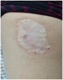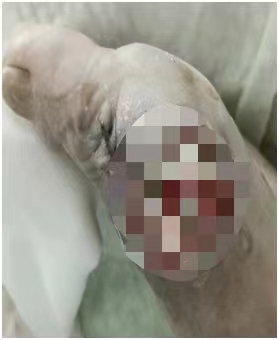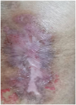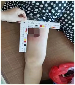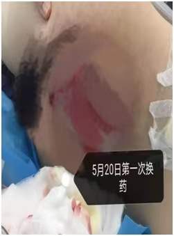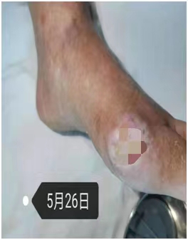 案例2(烫伤):患者徐某某,女,88岁,因胫前烫伤2月余未及时治疗致伤口感染化脓于1月23日来院就诊(伤口情况如图),经过换药后患者伤口痊愈。