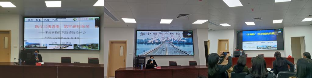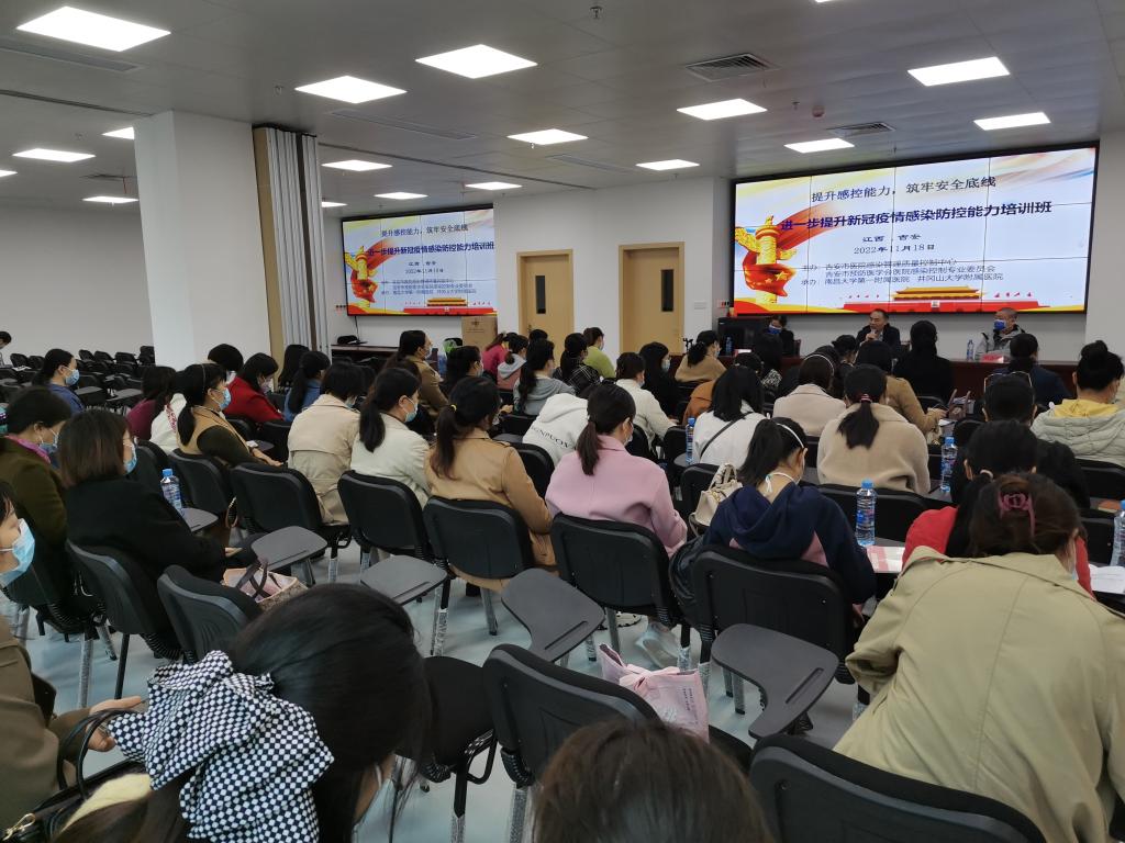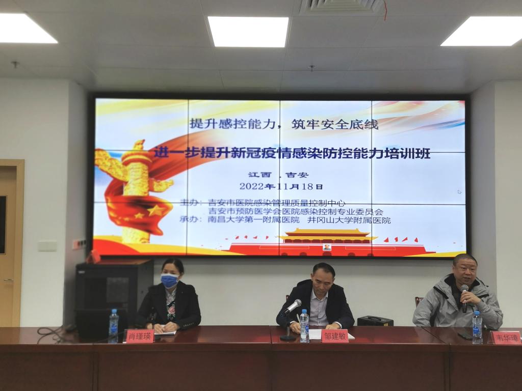 自9月份以来,吉安市多地出现新冠肺炎聚集性疫情,抗疫局面一度吃紧,从社区管控到隔离点运行,再到定点医院救治与保障,无不发动了全社会各行业的力量,体现了一切依靠人民,一切为了人民的全民抗疫。全民抗疫的工作需要“致广大而尽精微”,隔离点及方舱医院的运行需要精细化,工作人员的职业防护需要专业化,为进一步加强新冠疫情防控工作,交流成功经验,提升医疗机构感控水平,更好巩固抗疫成果,11月18日-19日,由吉安市医院感染管理质量控制中心和吉安市预防医学会医院感染控制专业委员会共同主办,南昌大学第一附属医院和井冈山大学附属医院共同承办的“进一步提升新冠肺炎疫情感染防控能力”培训会同步举行了线上线下会议。吉安市卫生健康委医政医管科科长邹建敏,井冈山大学附属医院党委委员、副院长韦华璋出席开幕式并讲话,全市各医疗机构百余名院感专职人员参加了线下会议,各医疗机构分管院长、医务科、护理部、发热门诊及兼职感控医生护士等相关人员280余人参加了线上会议。