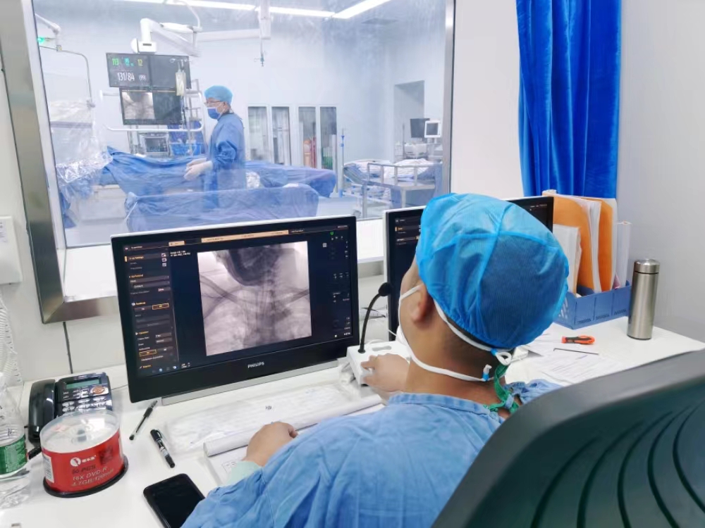 介入室护士长庞水娇介绍说,介入室全科人员从三天前就开始马不停蹄地搬运仪器设备,并进行紧张的调试工作,今天就正式投入使用,一刻不耽搁,目前已经进行了6台手术了,仪器设备使用正常,手术顺利。
