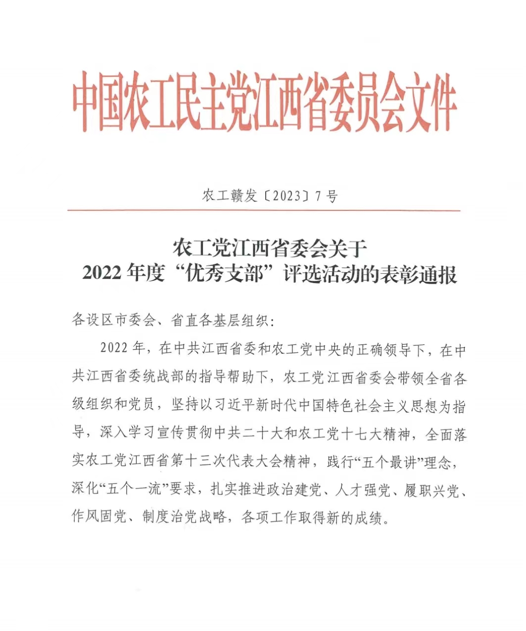 井冈山大学附属医院朱丰同志荣获农工党江西省委会2022年“优秀党务工作者”称号。