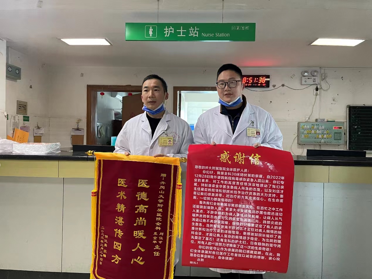 近日,患者家属将一封感谢信交到了全科主任刘伍才和副主任袁金华的手中,字里行间洋溢着他对全科全体医护理人员精湛的医疗技术和认真负责的工作态度给予高度赞扬及真诚感激。