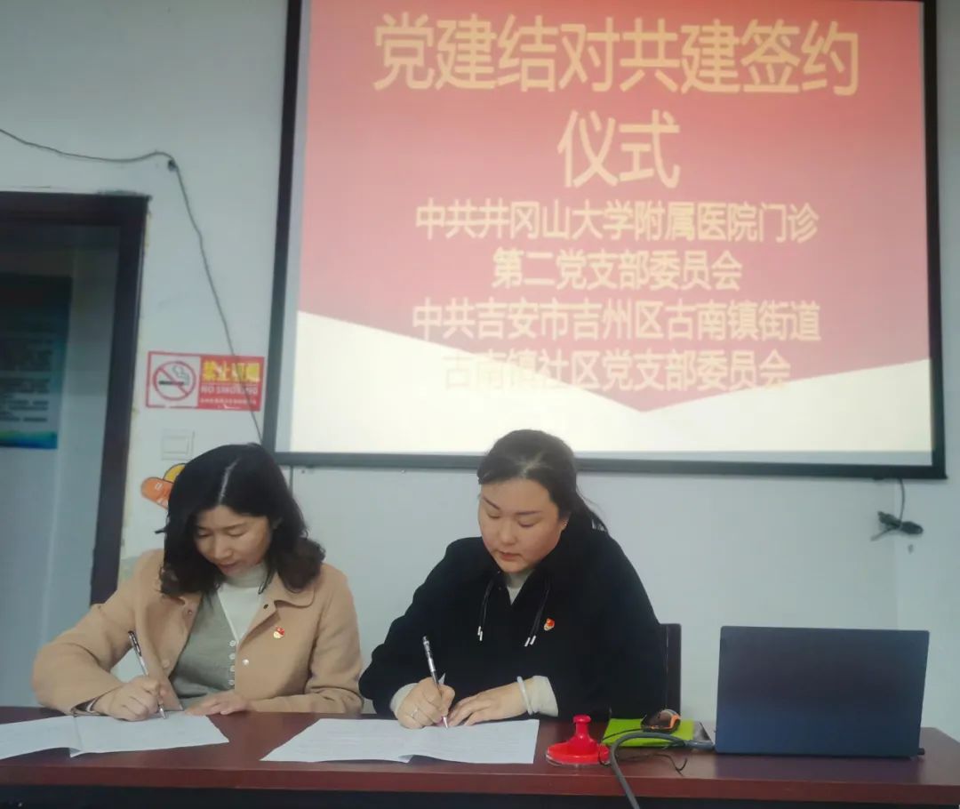 为丰富党建活动形式,共享党建资源,实现“结对共建、惠及群众”的理念。3月1日下午,井冈山大学附属医院门诊第二党支部和吉州区古南镇街道古南社区党支部在古南社区党群服务中心举行“党建结对共建”签约仪式。双方支委成员及部分党员参加本次活动。