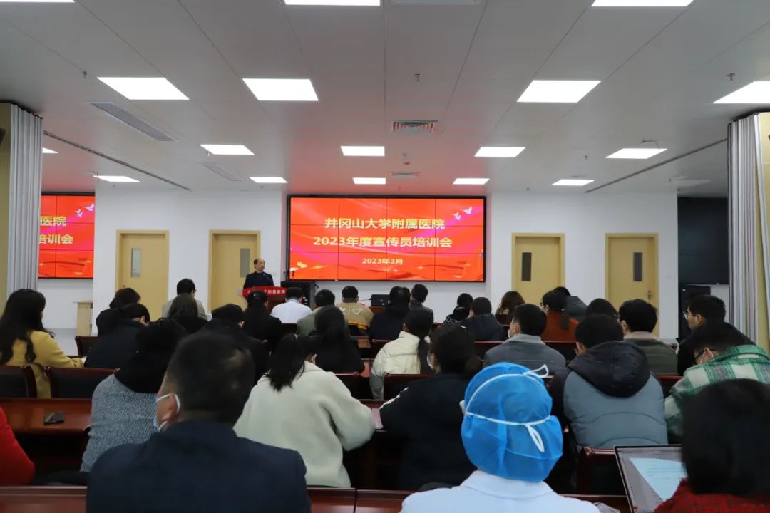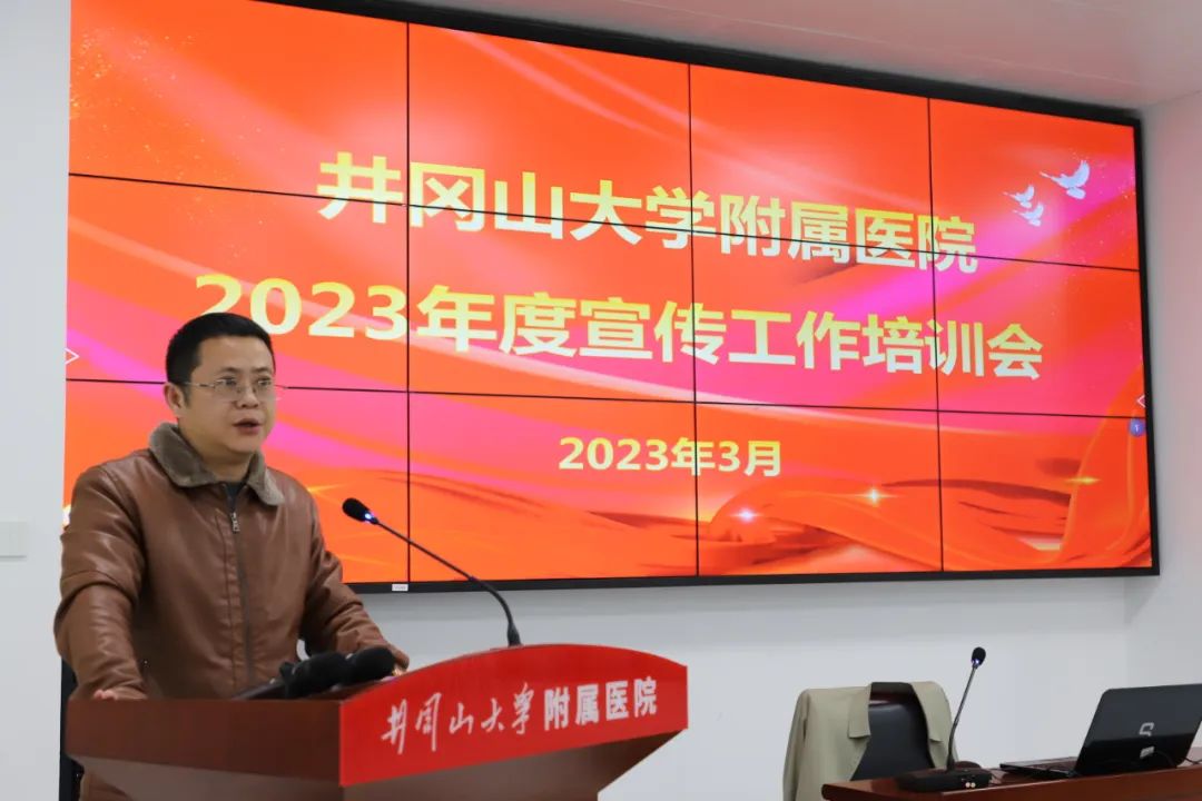 为有效提升井冈山大学附属医院宣传员的业务能力、写作技巧和摄影技巧,3月3日,我院举办宣传工作培训会,特邀请井冈山大学党委宣传部副部长、学校宣传资深专家胡正佩来院授课。院党委书记肖游章出席讲话,院党委副书记郭欢出席,各党支部青年宣传委员,各临床、医技、职能科室宣传员共80余人参加培训。