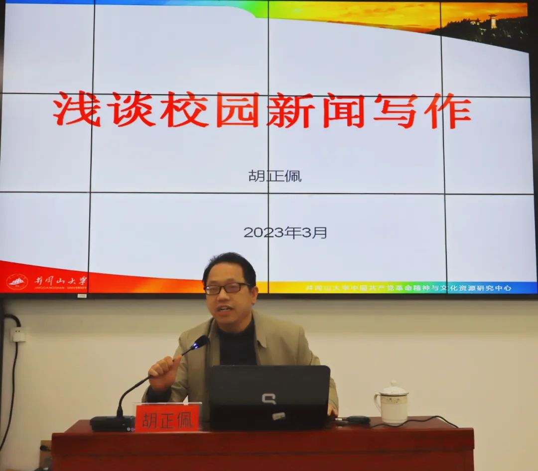 胡正佩结合自身长期从事新闻宣传工作积累的宝贵经验,通过课件演示、举例分析等方式,向大家讲解了新闻写作的基本类型和技巧,并以优秀新闻稿件为例,深入浅出地讲解了新闻信息写作的注意事项、应避免的误区等。在此基础上,他还运用一幅幅摄影作品,结合自身丰富的拍摄经验,深入浅出地讲解了新闻图片拍摄技巧,并就如何选取摄影角度构图、如何抓取人物表情等方面进行了授课。
