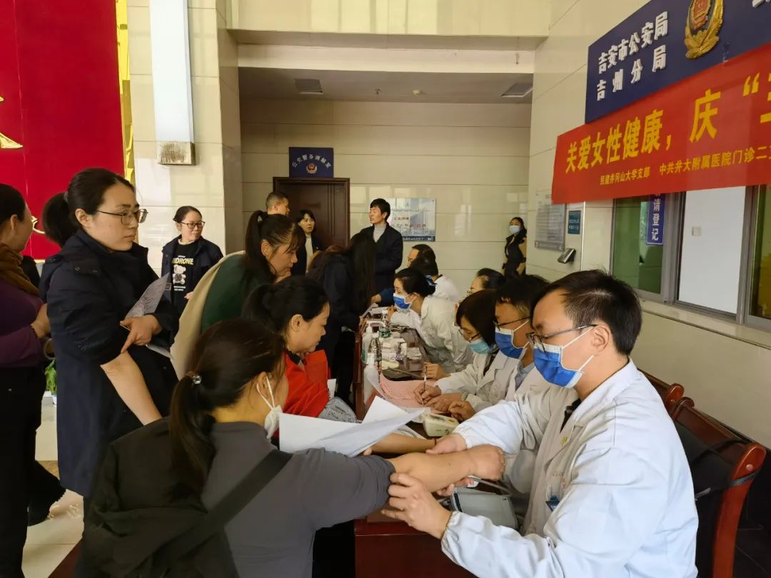 三月,春风送暖,草长莺飞,在2023年全国两会拉开序幕后,为全面学习贯彻党的两会精神,迎接第113个国际劳动妇女节的到来,关爱女性健康,进一步提升女性群众自我保健意识,3月7日,井冈山大学附属医院门诊二支部、民建井冈山大学支部、民建吉安市直四支部在吉安市公交长运总公司开展大型联合义诊活动,为吉安市“巾帼文明岗”——吉安市公交长运总公司的井冈女司机班组们送去节日“健康套餐”。